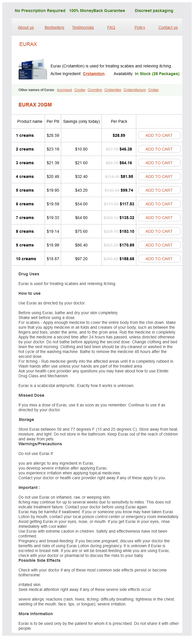 Eurax packs: 1 creams, 2 creams, 3 creams, 4 creams, 5 creams, 6 creams, 7 creams, 8 creams, 9 creams, 10 creams
