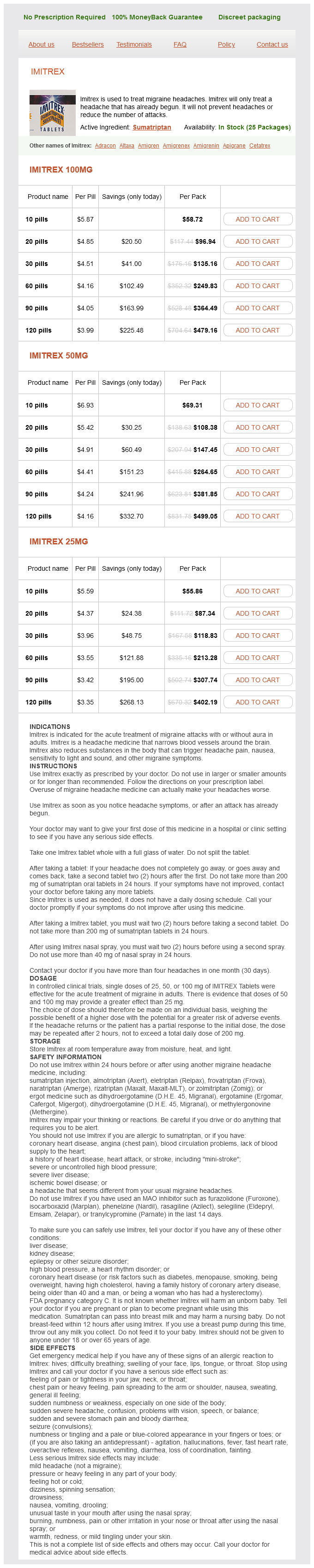 Sumatriptan dosages: 100 mg, 50 mg, 25 mg