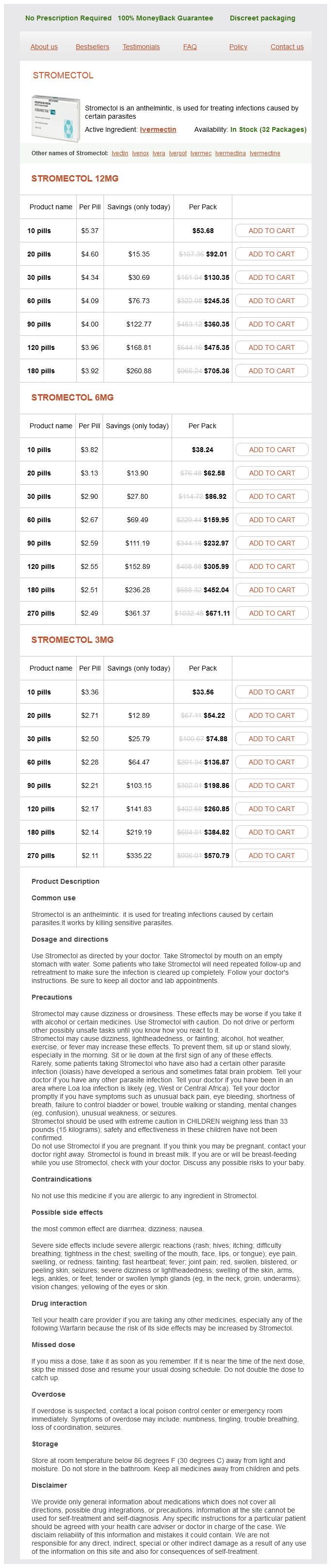 Stromectol packs: 10 pills, 20 pills, 30 pills, 60 pills, 90 pills, 120 pills, 180 pills, 270 pills
