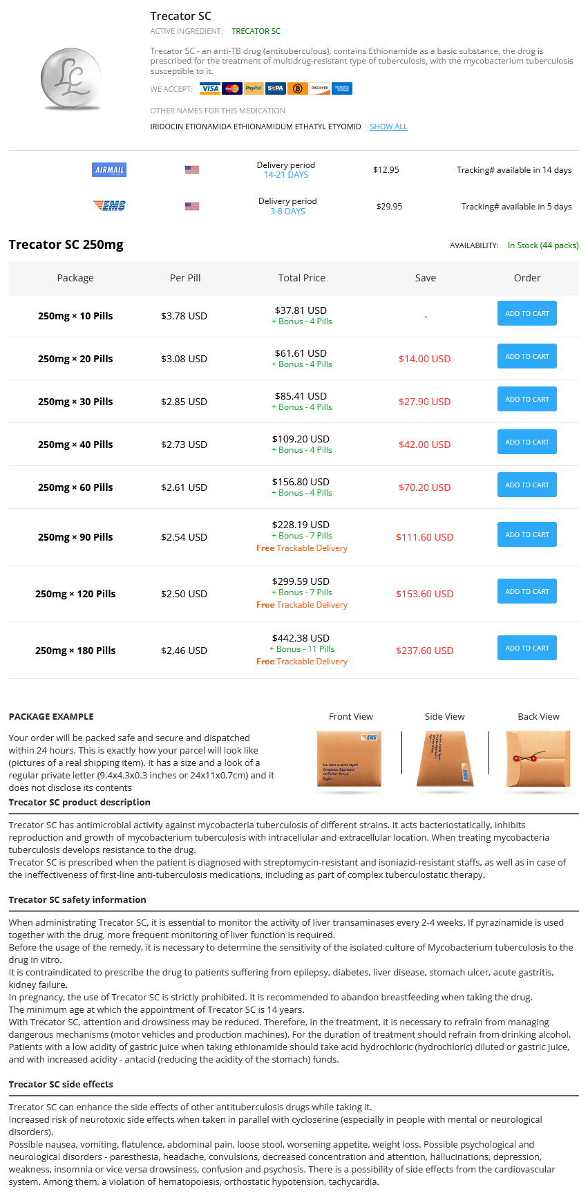 Order 250mg trecator sc overnight delivery