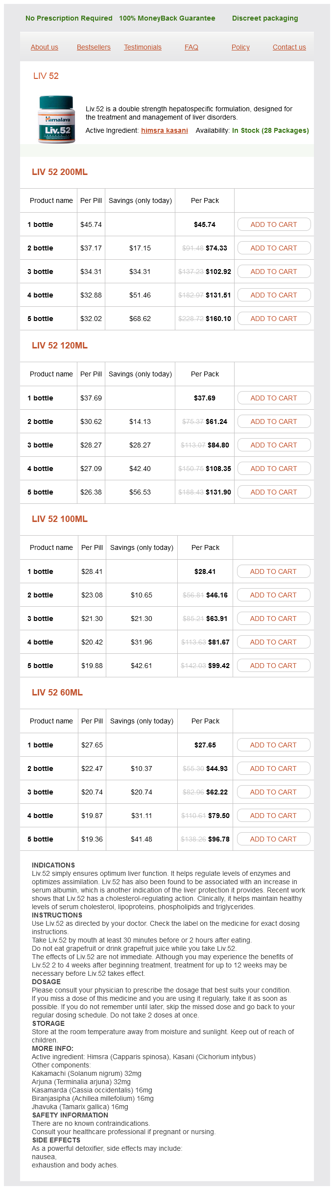 Liv 52 dosages: 200 ml, 120 ml, 100 ml, 60 ml