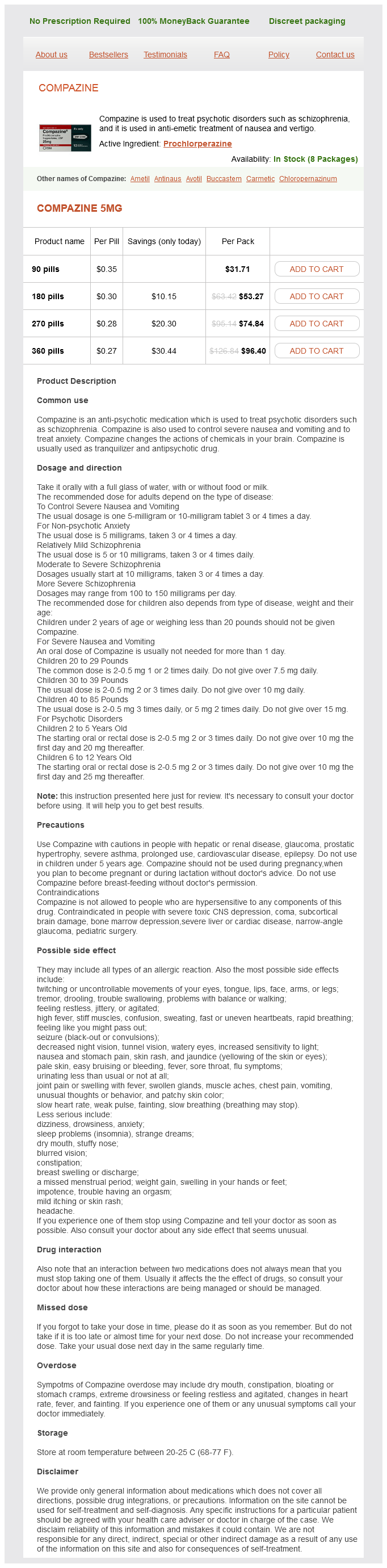 Prochlorperazine packs: 90 pills, 180 pills, 270 pills, 360 pills