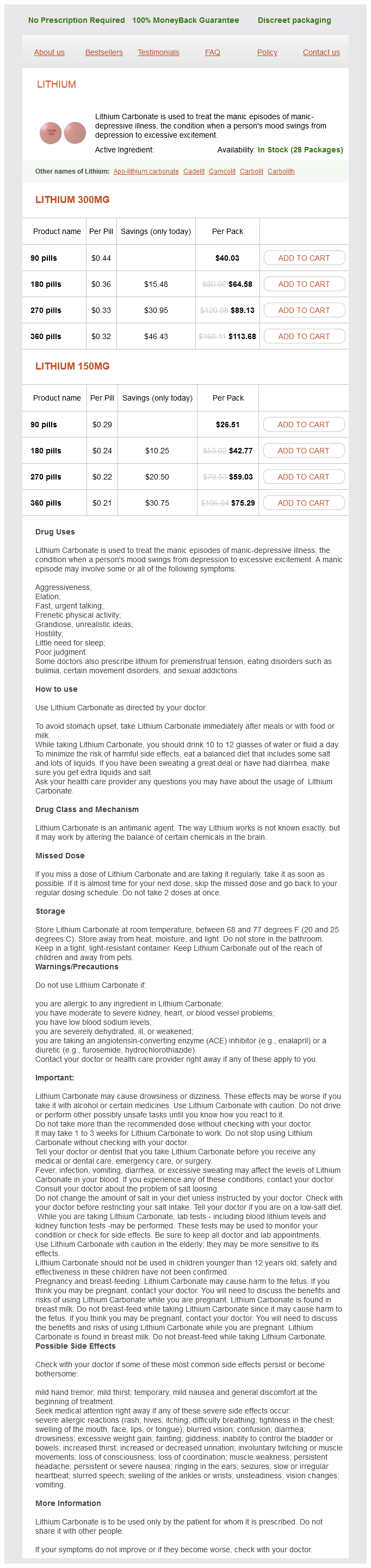 Lithium packs: 90 pills, 180 pills, 270 pills, 360 pills
