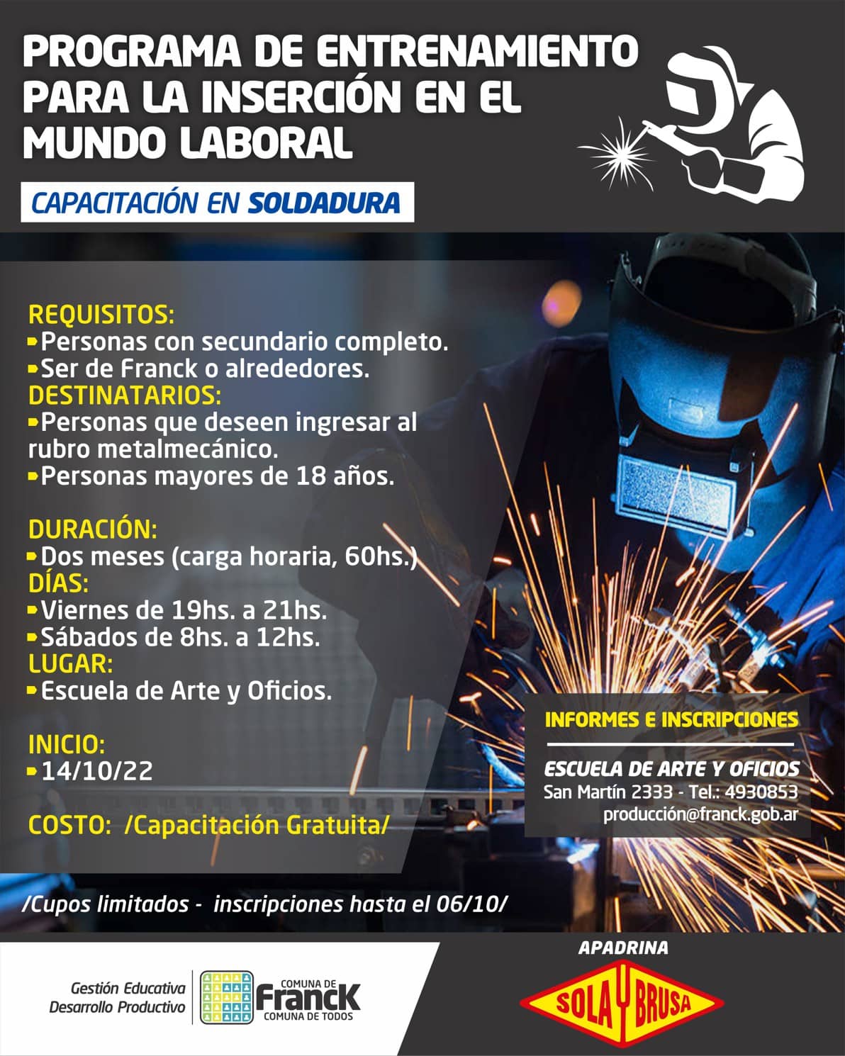 Las capacitaciones estarán a cargo de docentes de la Escuela de Arte y Oficios, y de personal de la empresa metalúrgica franckina.