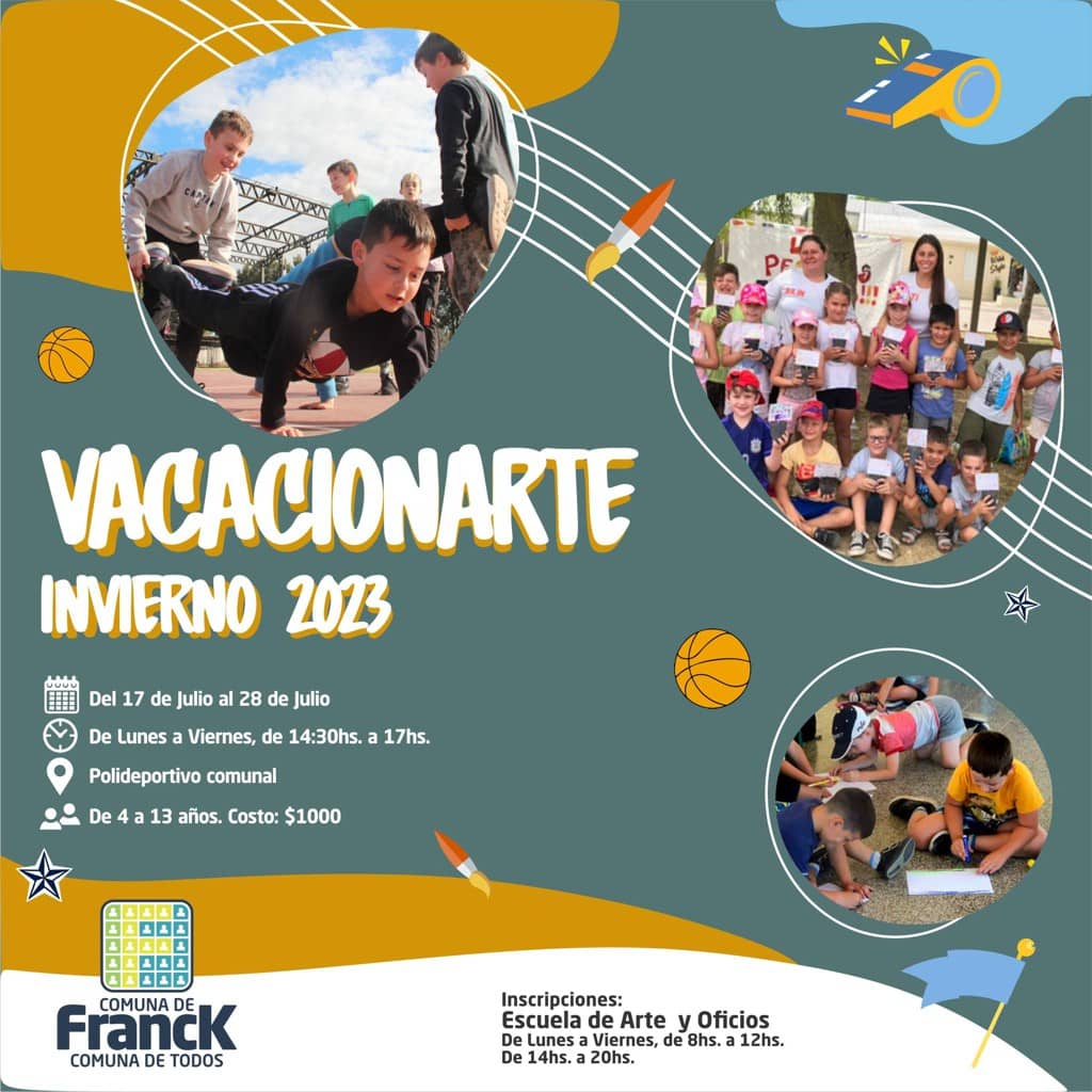 Se acerca una nueva edición de Vacacionarte Invierno para que los niños y niñas de Franck vuelvan a divertirse y compartir lindos momentos juntos, promoviendo valores y la integración a través de juegos, actividades deportivas, artísticas y educativas.