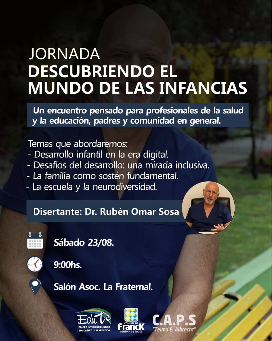 En conferencia de prensa, se anunció esta mañana la jornada “Descubriendo el mundo de las infancias”. La disertación estará a cargo del prestigioso médico pediatra Dr. Rubén Omar Sosa. Será el sábado 23 de agosto a partir de las 9 en el Salón Asociación “La Fraternal”.
