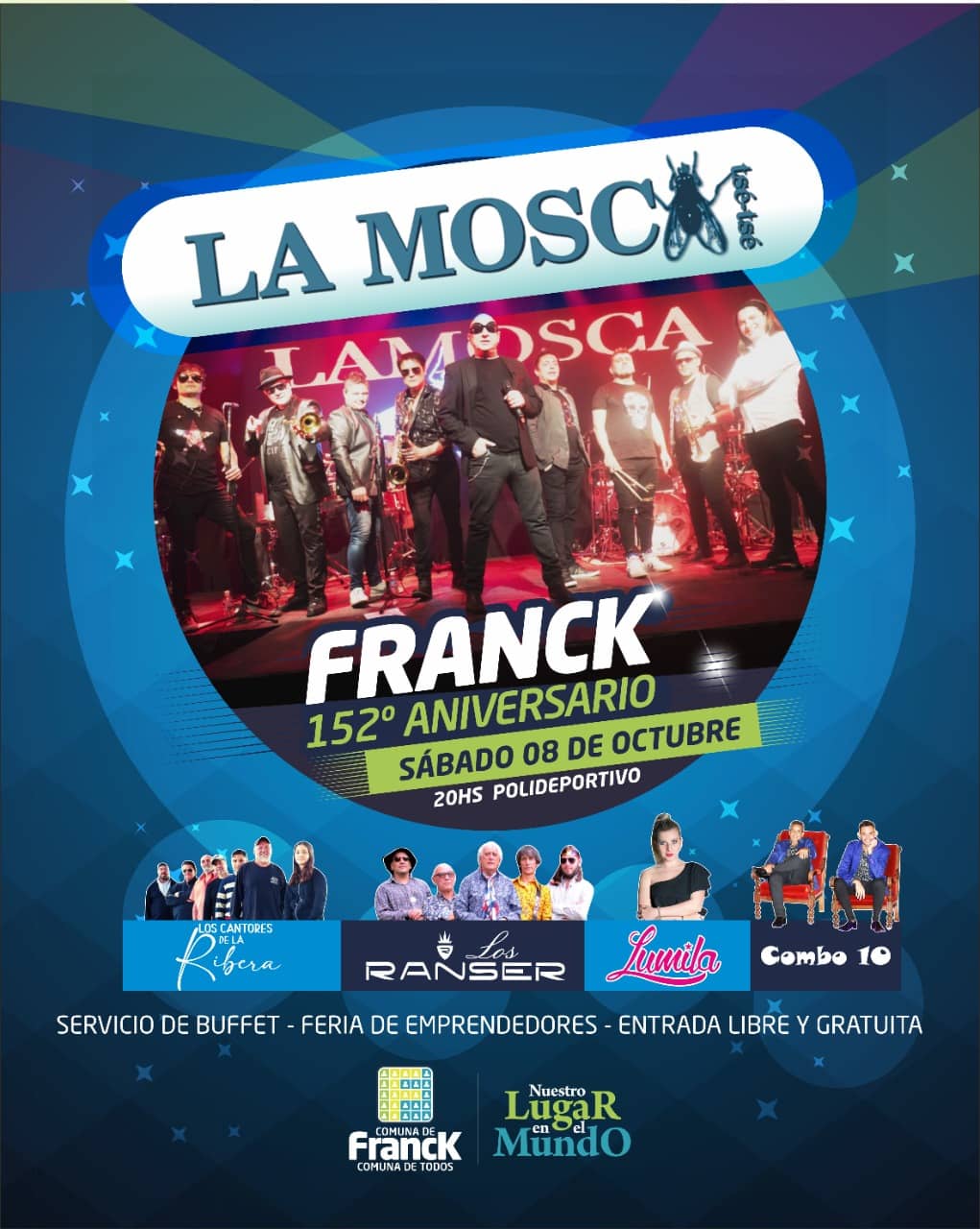 El sábado 8 de Octubre, el polideportivo comunal de Franck, se vestirá de fiesta para celebrar el 152° aniversario de la fundación de nuestro pueblo.