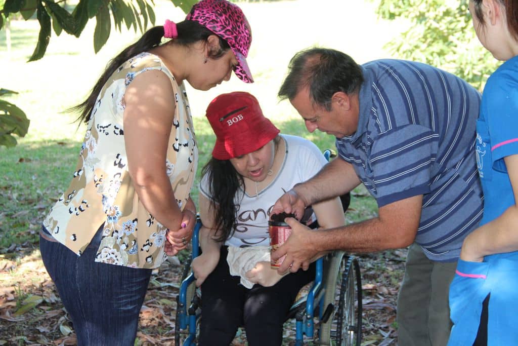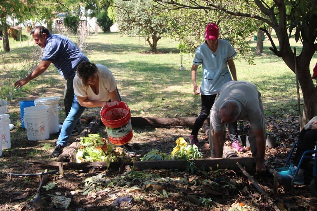Los concurrentes del centro de día “Senderos”, están participando de actividades pre- laborales en el vivero y también en este nuevo proyecto comunal colaborando en las distintas tareas que abarca el mismo, como ser el picado de frutas y verduras, la colocación de hojas o pasto seco para impedir la entrada de moscas, riego, limpieza y lavado de baldes en los cuales vienen los restos de la verdulería, entre otras; siempre con el acompañamiento del personal comunal.