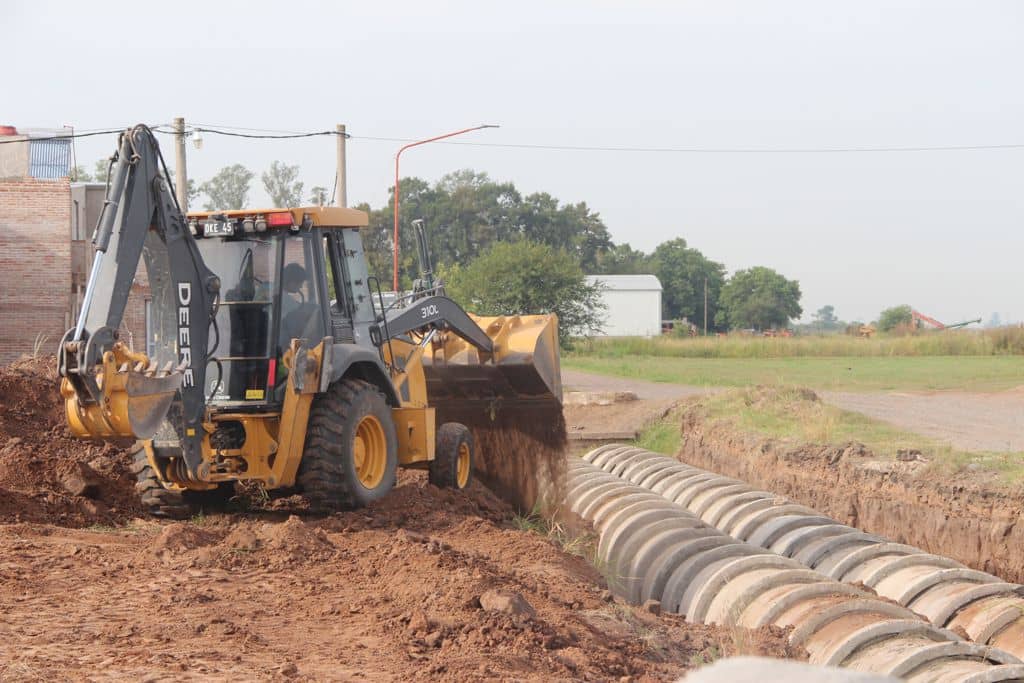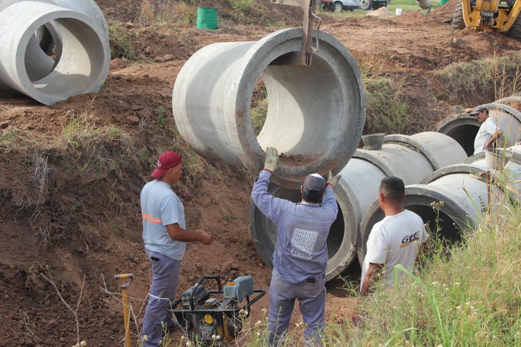 Personal de obras públicas, avanza en el entubado del canal existente sobre calle J. Berizzo, el cual deriva por pendiente natural los excedentes pluviales acumulados en el reservorio.