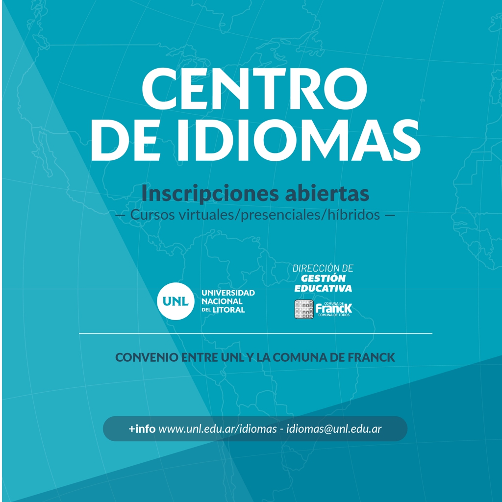 En el marco del convenio entre el Centro de Idiomas de la UNL y la Comuna de Franck a través de la Escuela de Artes y Oficios, se abren las inscripciones para idiomas y niveles, del segundo cuatrimestre, mediante cursos presenciales, virtuales, híbridos.