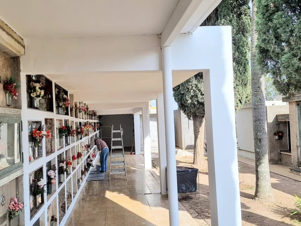 Lavado y refacción de galerías, trabajos de pintura, incorporación de bancos de hormigón, son algunas de las tareas que continúan en el con el objetivo de mantener en óptimas condiciones el cementerio comunal.