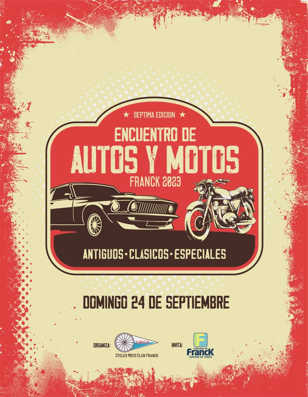 La Comuna de Franck junto al Cycles Moto Club, ultiman detalles para el 7° encuentro fierrero a desarrollarse el próximo domingo 24 de septiembre, y que contará con exposición y caravana de vehículos, pruebas de destreza, bandas en vivo, entretenimiento y el tradicional almuerzo.
