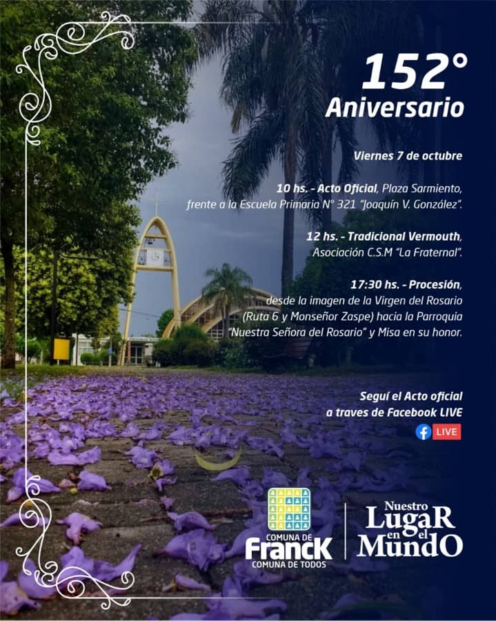 El Acto Oficial, será transmitido en directo vía Facebook Live, desde la página oficial de la Comuna de Franck.