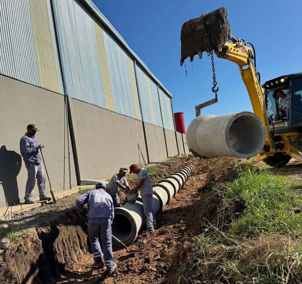 En una colaboración digna de ser destacada, entre la empresa local Aceitera Colibrí y la Comuna de Franck, se está llevando a cabo una significativa obra de entubado en la calle Gobernador Gálvez.
